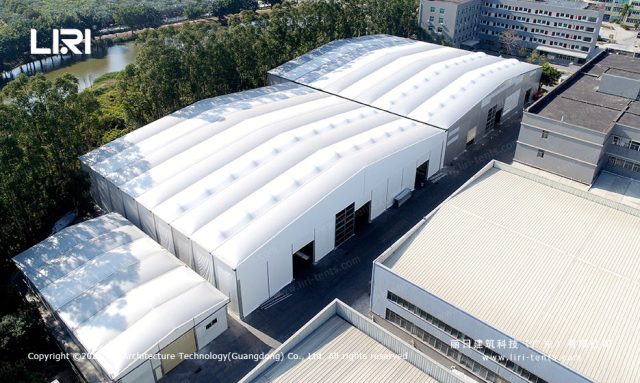 工业篷房通常用于半永久性建筑,对品质、安全性、施工和使用年限方面上有着非常高的要求。丽日建筑科技拥有经验丰富的研发团队和施工团队超过20年,并根据篷房要求结合周边环境设计更优的篷房方案,以确保客户满意并减少后顾之忧。一般工业篷房的跨度可在3-80米之间,长度可根据不同需求定制。
