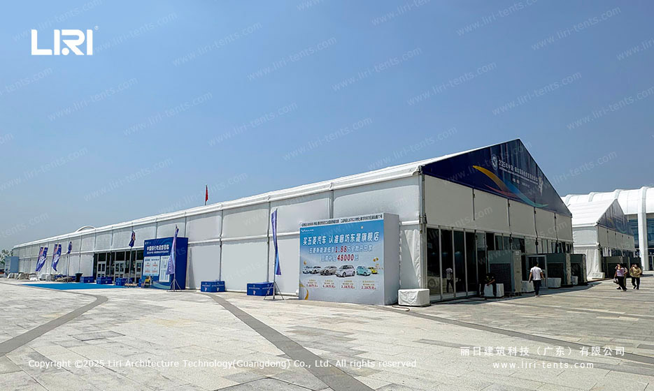 作为一种装配式移动建筑,展览篷房在各类场合中发挥着重要作用。丽日建筑科技的展览篷房以其独特的特性有效解决了展览活动中的诸多问题,包括场地空间、时间效率、个性化展示以及空间安全等方面。