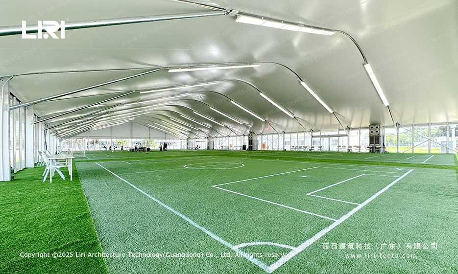 高端篷房提供多种尺寸选择,跨度从3米到50米不等,长度也可按需求延伸。装配式设计使其具有较强的延展性,能够灵活适应各种场地需求。
