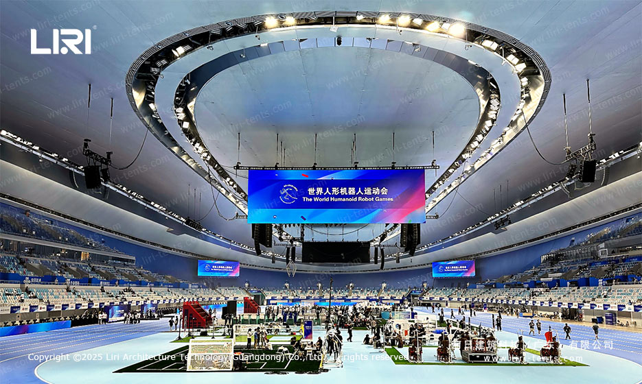 2025世界人形机器人运动会已于14号晚上在国家速滑馆“冰丝带”盛大举行开幕仪式,本次赛事为期三天(15-17日),共设置了26个赛项,将进行487场比赛。丽日建筑科技(广东)有限公司作为本次赛事的坚实后盾,凭借其卓越的技术与丰富的经验,为来自全球16个国家的280支参赛队伍打造了多个专业赛训场馆。让我们共同见证参赛选手们在丽日智造篷房里的赛训成果。