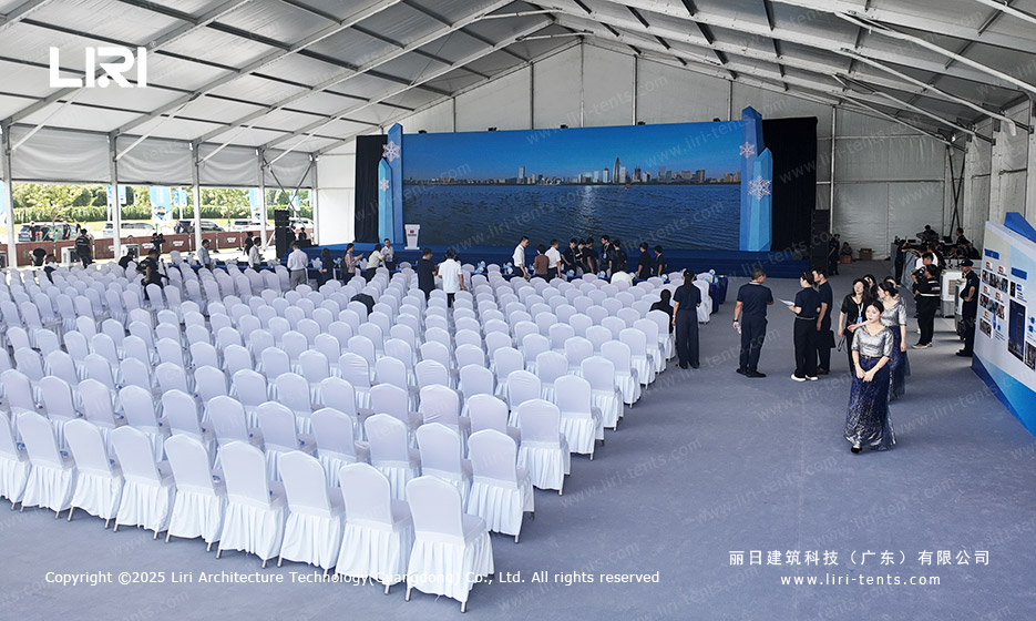 篷房凭借其稳固的结构、防水的篷布设计以及多种高性能幕墙系统,完全能够胜任抗风抗雨的需求,使用时更加安全可靠。