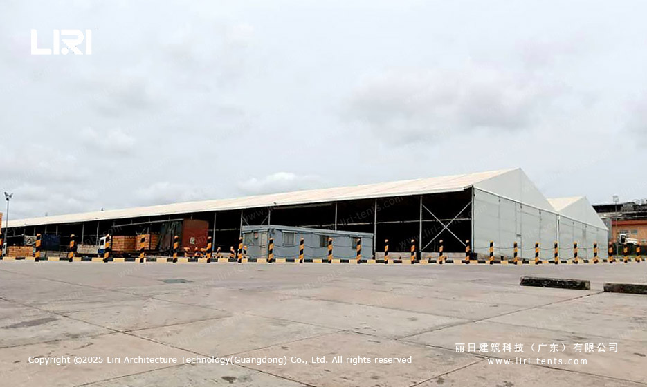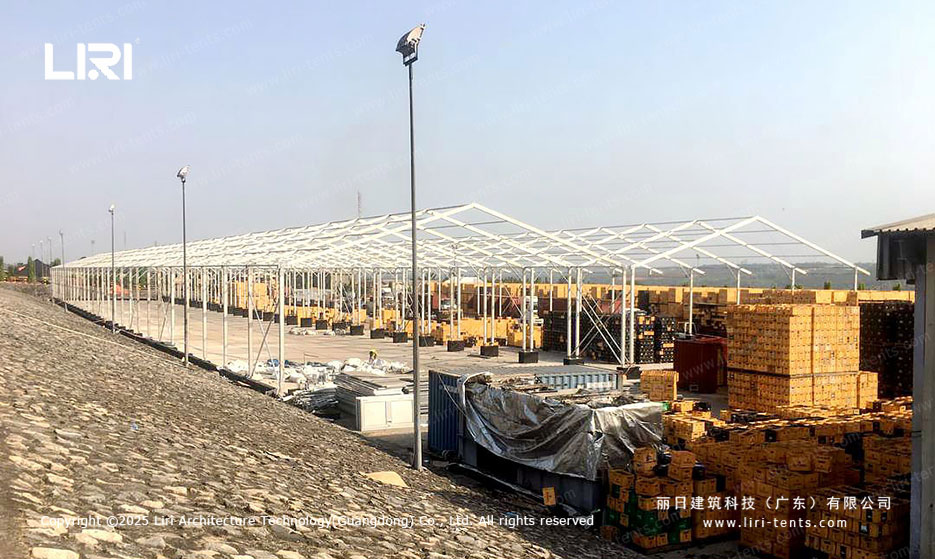 与传统仓库相比,篷房以铝合金框架为主结构,显著降低了建设和人力成本。传统建筑需要大量钢筋混凝土,并且耗费大量的人力和时间。而篷房凭借轻便的铝合金框架,建设速度快、所需人力少,无需过多材料即可搭建出坚固耐用的仓库,从而为企业节省了大量成本。