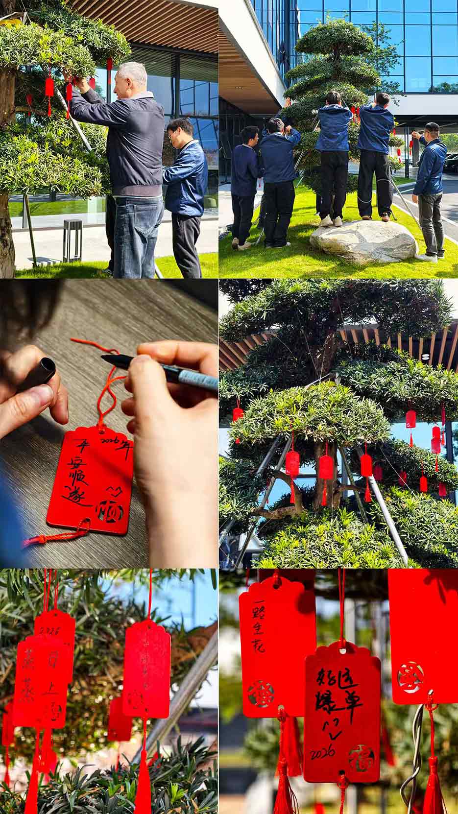 在今年新增的许愿环节中,大家纷纷拿起笔,在许愿牌上认真写下对2026年的心愿。笔尖在牌面上沙沙作响,那些对未来的殷切期盼,跃然于许愿牌上。写好后,众人亲自将许愿牌一一挂在公司的许愿树上。微风拂过,许愿树轻轻摇曳,仿佛在温柔地回应着大家的心声。